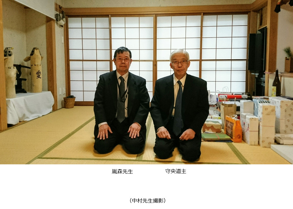 山口県合気道連盟会長 中村師範に同行し三代道主植芝守央先生宅に年始のご挨拶にお伺いした。 お神酒を頂き 数々のお言葉も頂戴した。