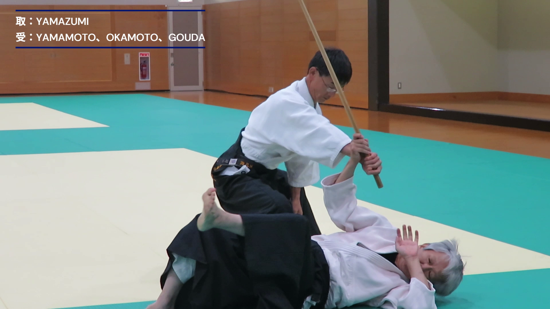 太刀取り、杖取り、3人掛け、指示された基本技をいくつか